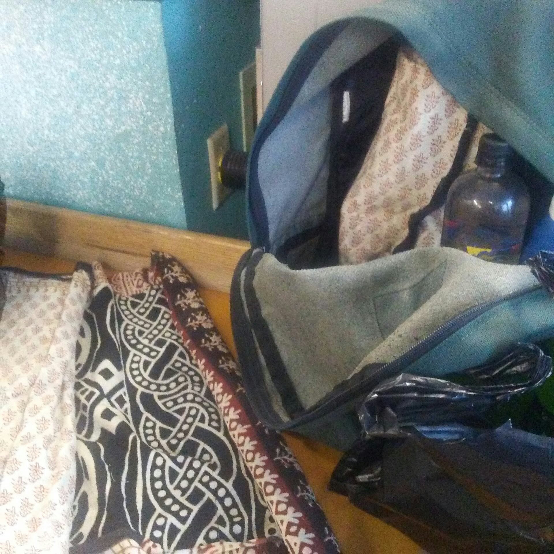 I used the sari as the exterior layer and folded it over a thicker Celtic throw, then hand stiched in about a one inch edge, then finger crocheted loops which I sewed on with buttons and then slipped them onto the window hardware and curtains.