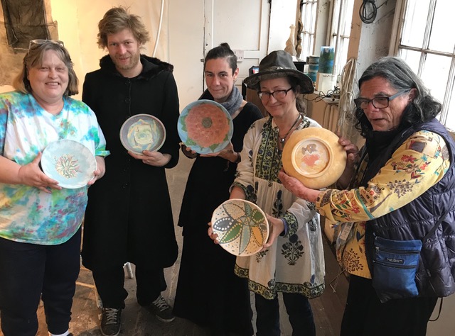 All hand-painted bowl sales support The Gather:Make:Shelter Academy, a creative citywide art collaboration. Artists who are housed and artists experiencing houselessness and poverty connect through intimate art collaborations over the course of one year.