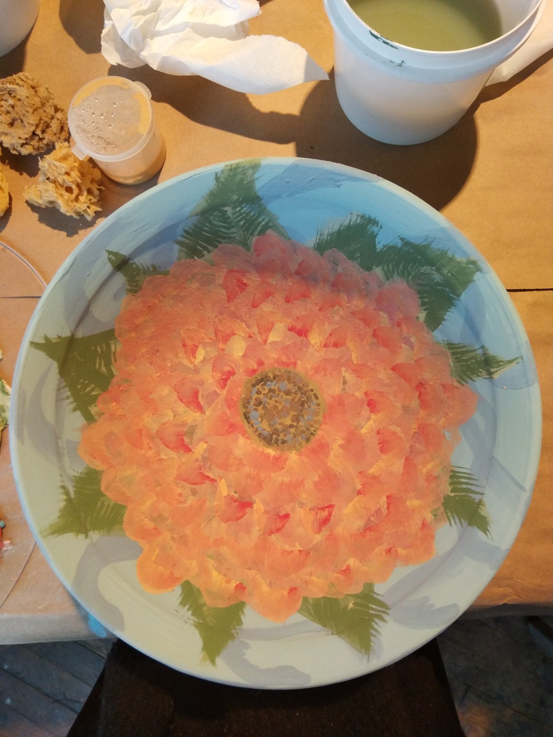 This is the best I painted before it’s glazed and fired, a lotus or just some beautiful flower.