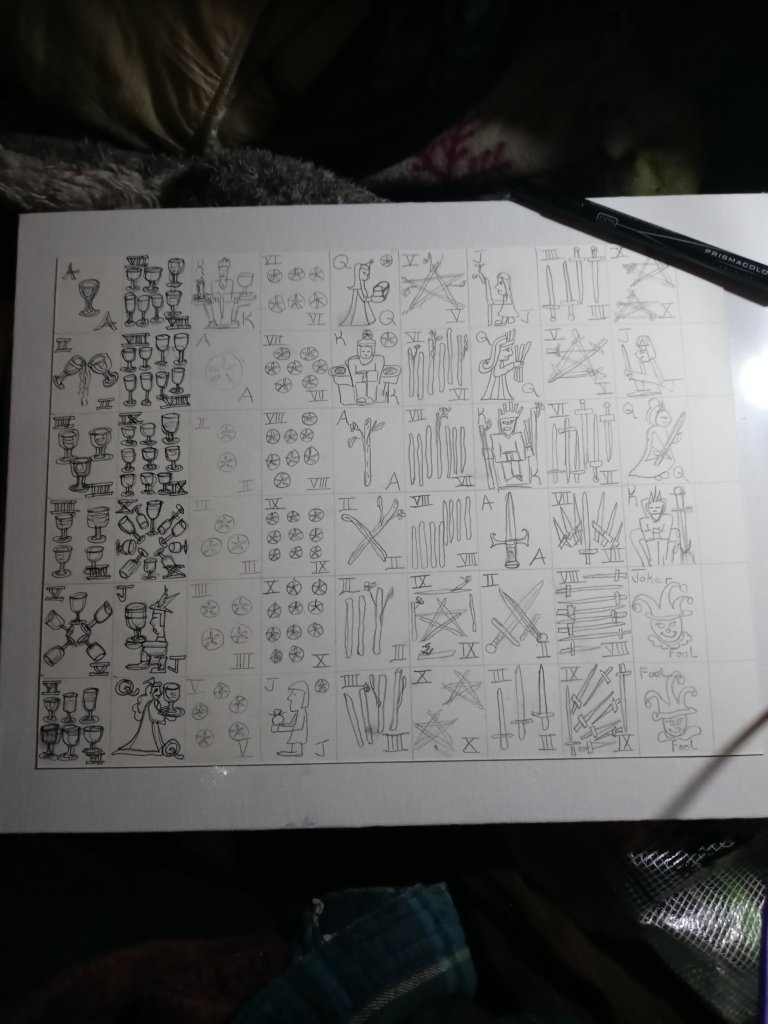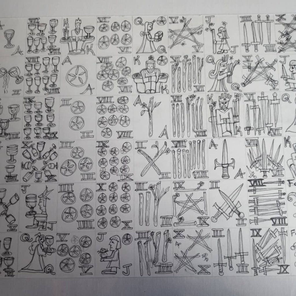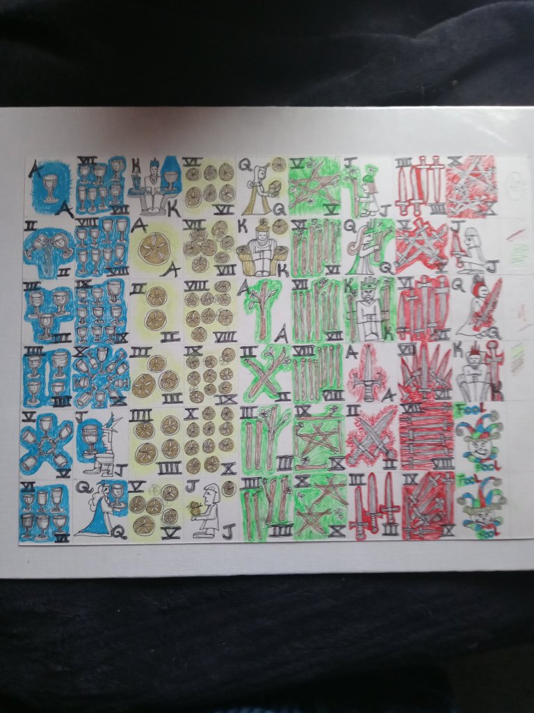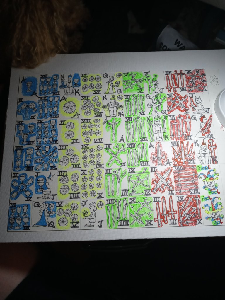 She’s a gypsy and she has her own cards, these are for Meilin. The first drafts, the inked cards, the first colors added, and the second colors. And I’ve added a palette on the right first to last used. I’m thinking and not sure I may have 2 to 4 more color layers to go, we’ll see.