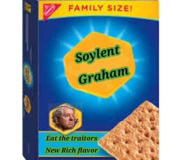Meme made for my husband Charles, Soylent graham, eat the traitors, New Rich flavor, more soon on the hateful 8.
