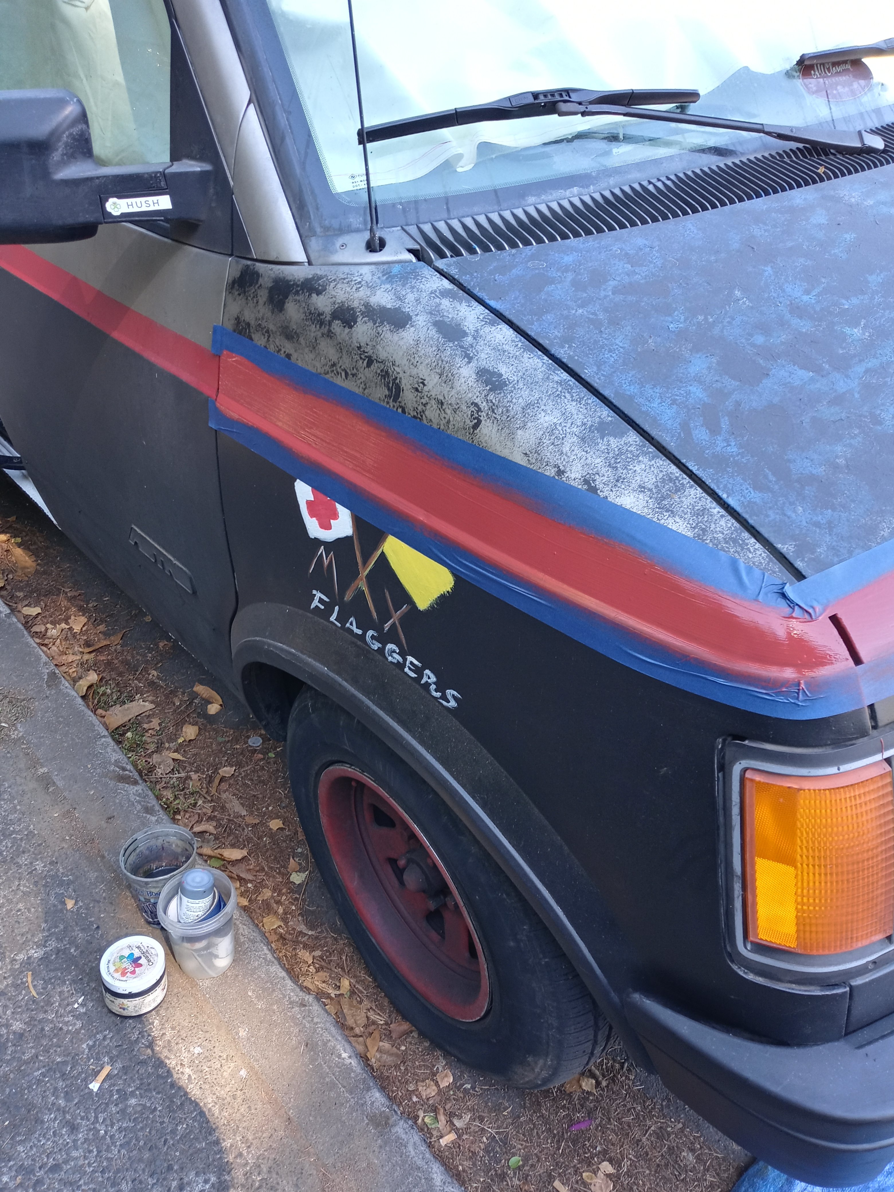 Cleaning up hobgoblinS red stripe and later on front and center I want to add EARTH with art highlighted and then also mirrored so when a person looks in their mirror its clear to read you see both, I hope to do this correctly. 😸🖌️🎨🤭
