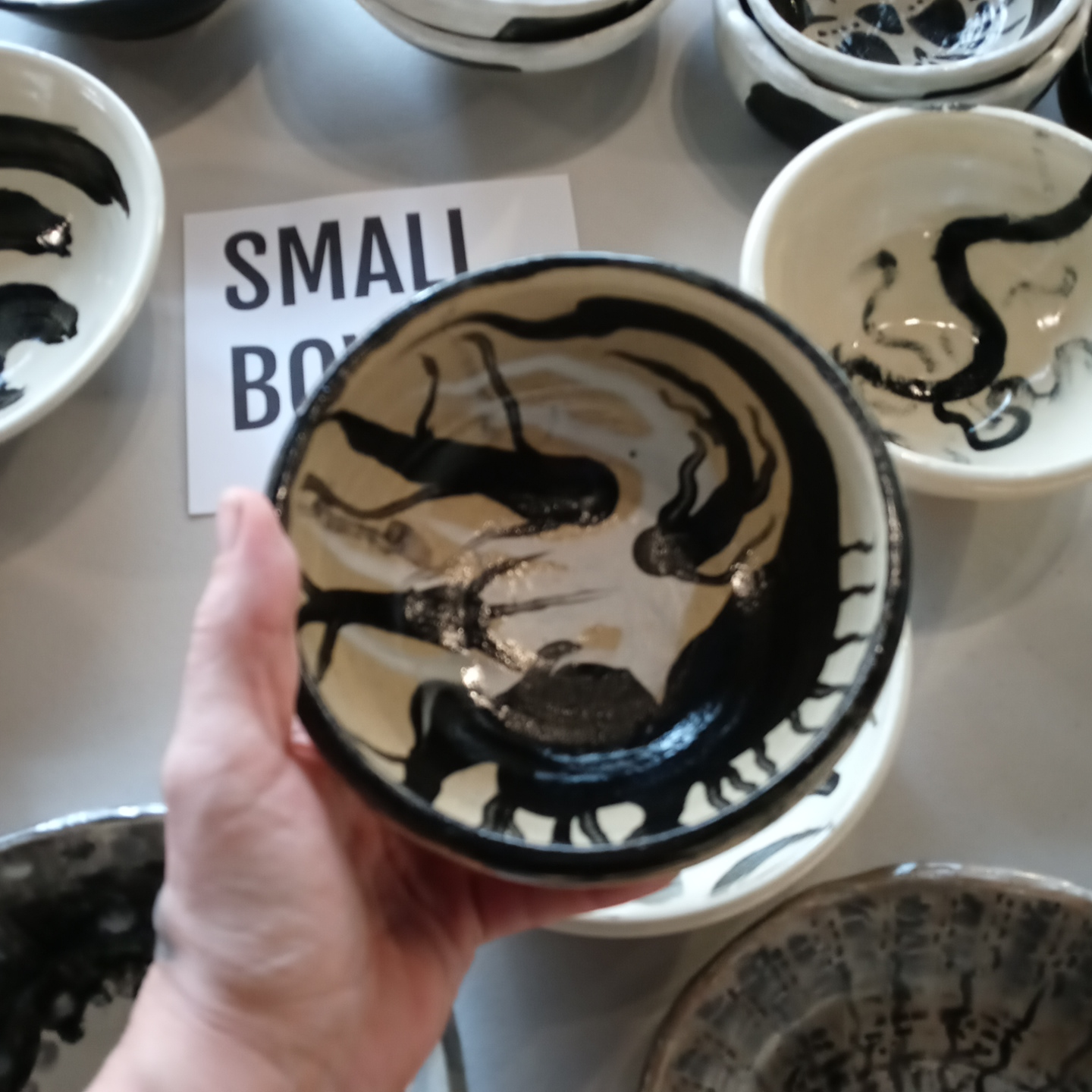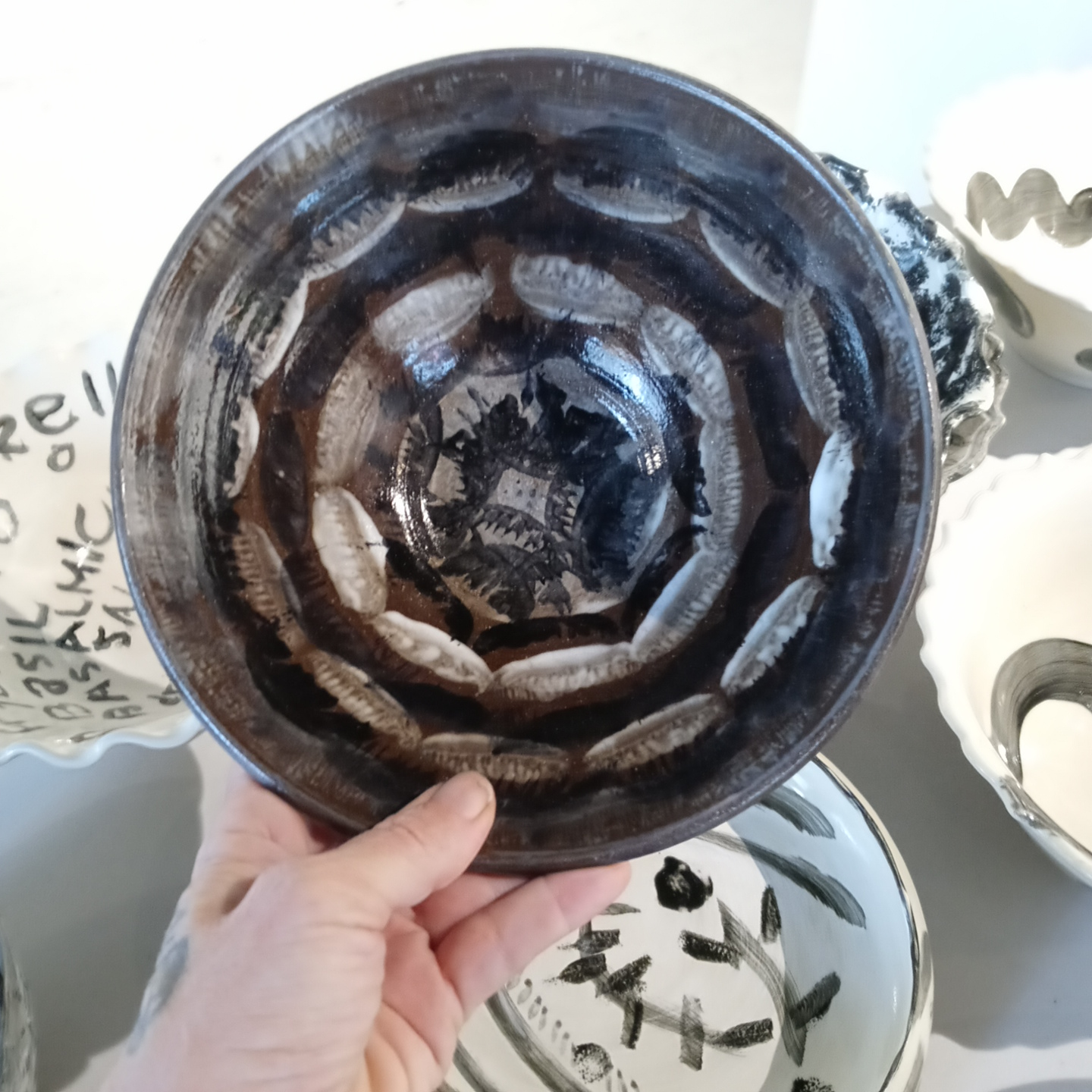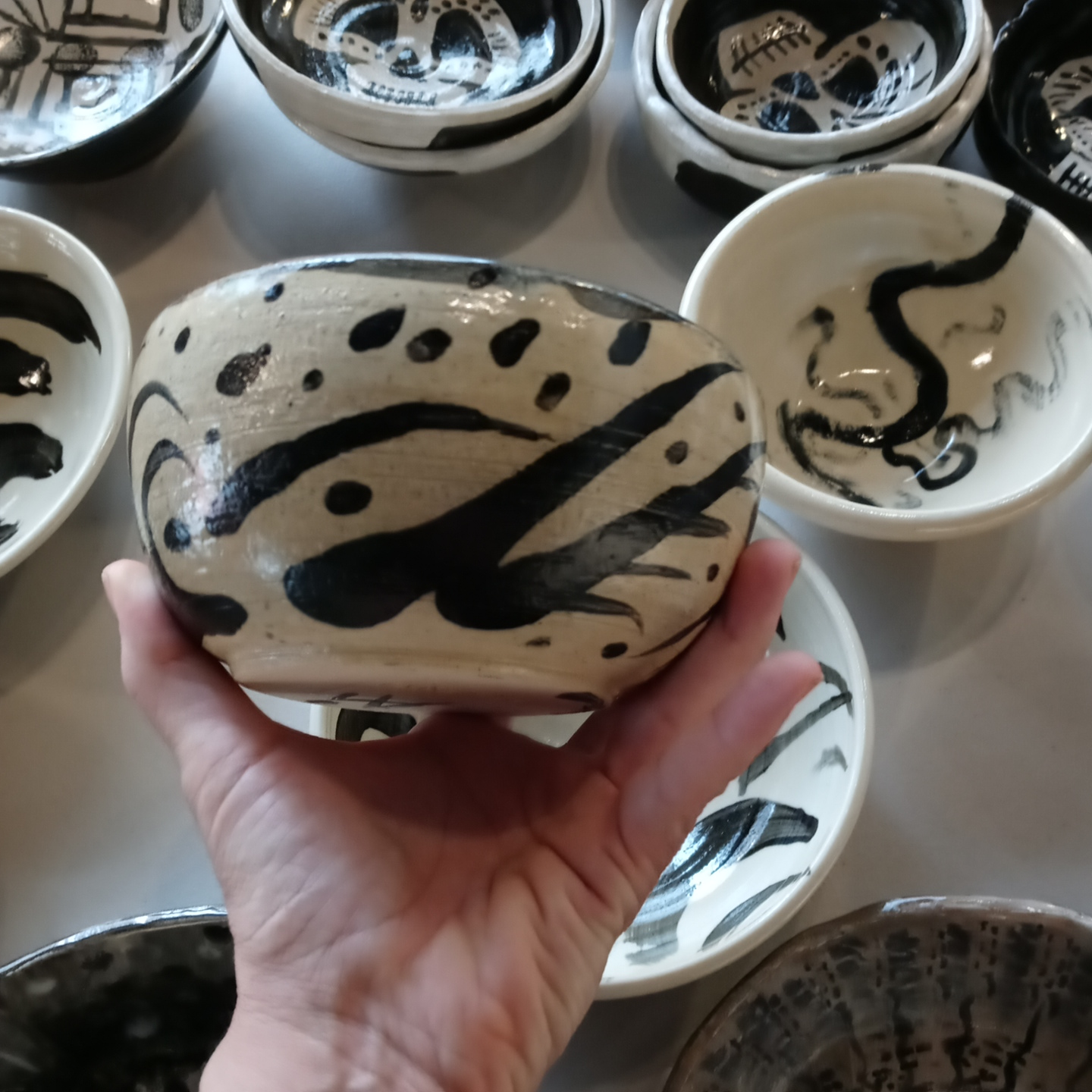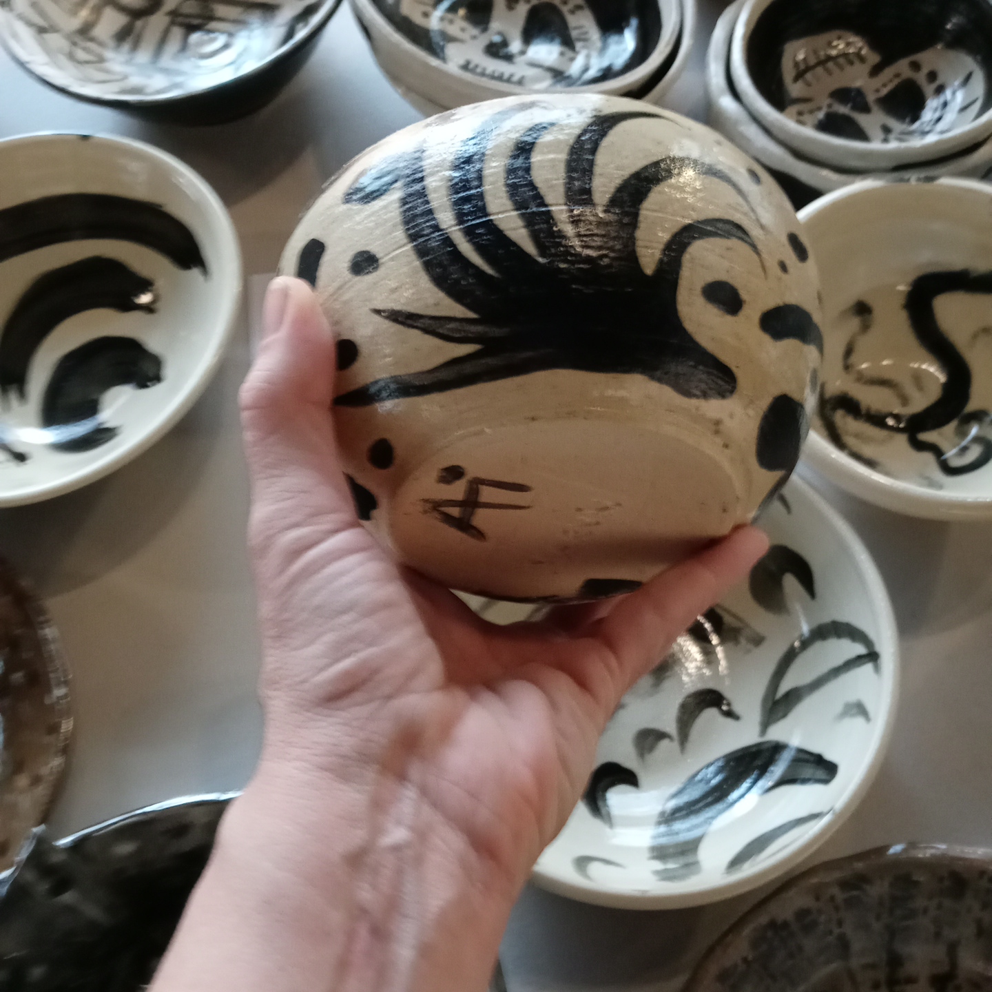 So, today I painted 4 more bowls for Gather Make Shelter connection-project and I took photos and video of the current collection of bowls painted by All of the artists who include Peggy, Khem, Mark, and myself Aileen McPherson my mark is Ai on my pottery. Please enjoy the photos I’ll be putting the video on Tiktok and Instagram