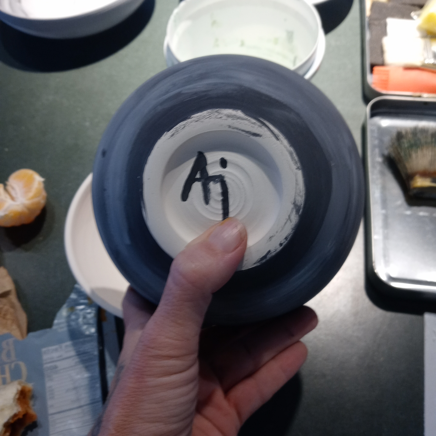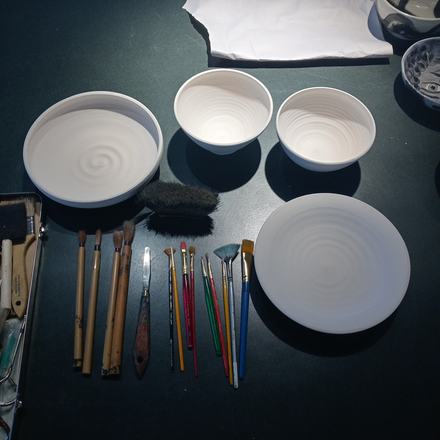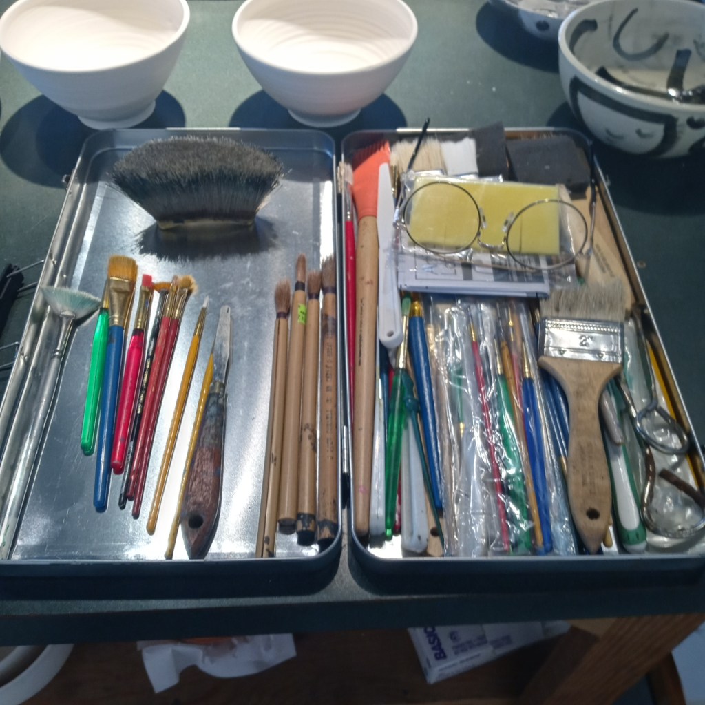 GMS Connection project more bowls Aileen McPherson12/10/2021#pottery, community, sculpture, visual art Post navigation PreviousNext 4 more bowls for Gather Make Shelter the Connection Project. My personal tools My first choice of tools In the end 2 tools chosen to create 4 unique bowls I love it when my brushes create interesting marks I found this beautiful fan brush when I was walking Jac I’ll be using it today when I go paint more bowls. Share this:TweetShare on Tumblr Print (Opens in new window) Print Share on Reddit (Opens in new window) Reddit Pocket Share on Telegram (Opens in new window) Telegram Share on WhatsApp (Opens in new window) WhatsApp Email a link to a friend (Opens in new window) Email Like Loading... Related