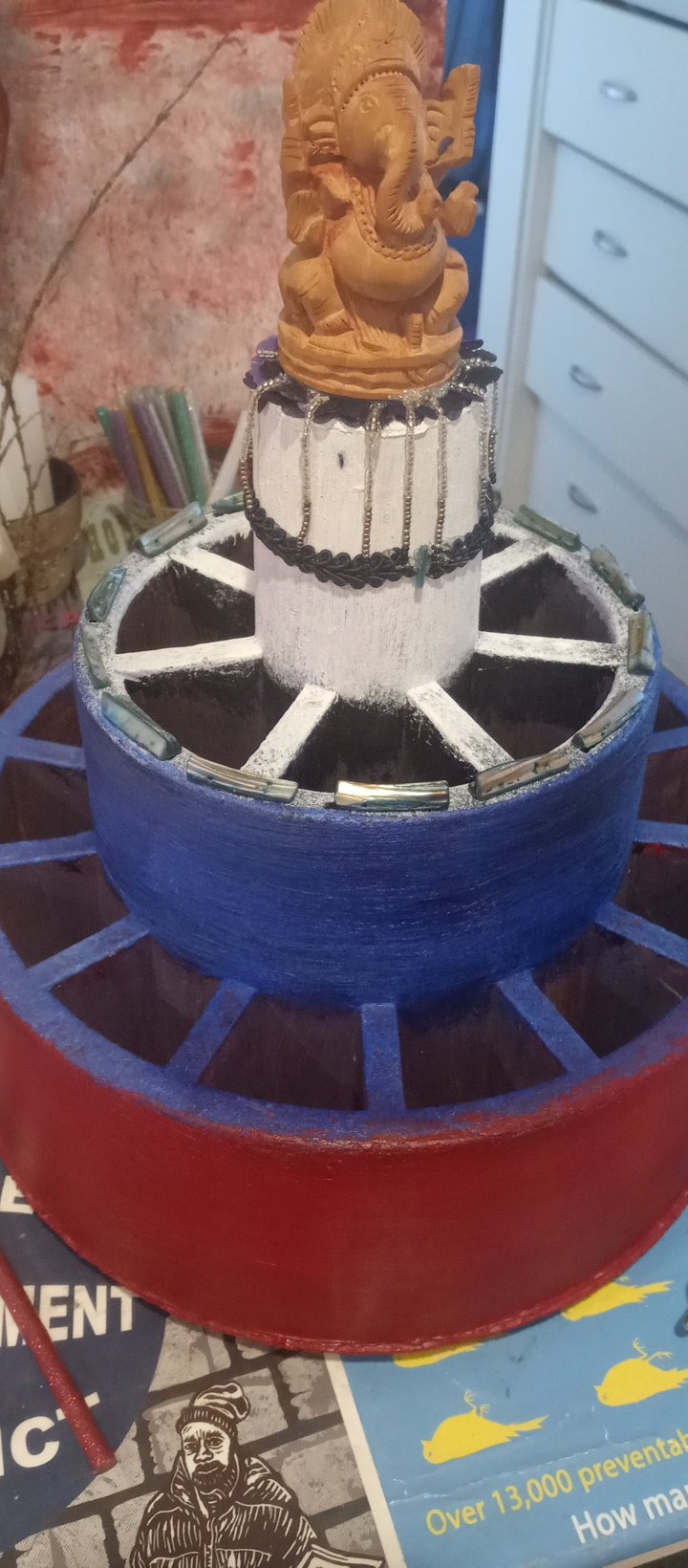 I was given this beautiful ganache years ago by a lovely wonderful Angeli, I miss her smile and her loving heart, but now Ganesh has a home with my paint brushes and it is finally finally done I am so thankful. If I make any changes I’ll post them as an update.