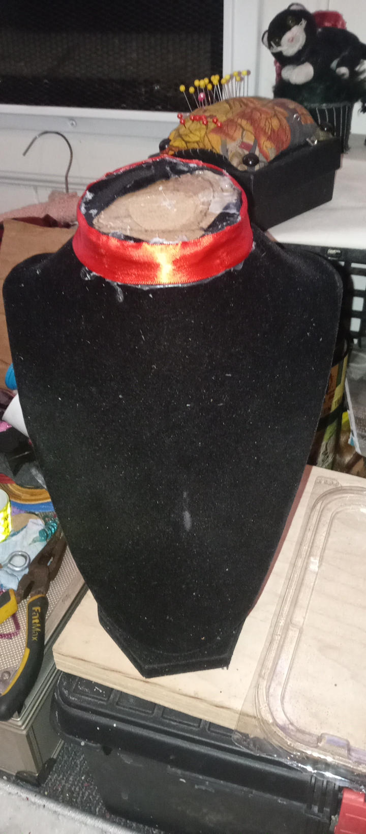 I was given tho jewelry neck forms, and this one had the most damage, so I took it apart and put it back together,. Next I want to paint it to give it a hard shell exterior and showcase my own jewelry on it whether I wear it or sell it, this will be my new jewelry bust.