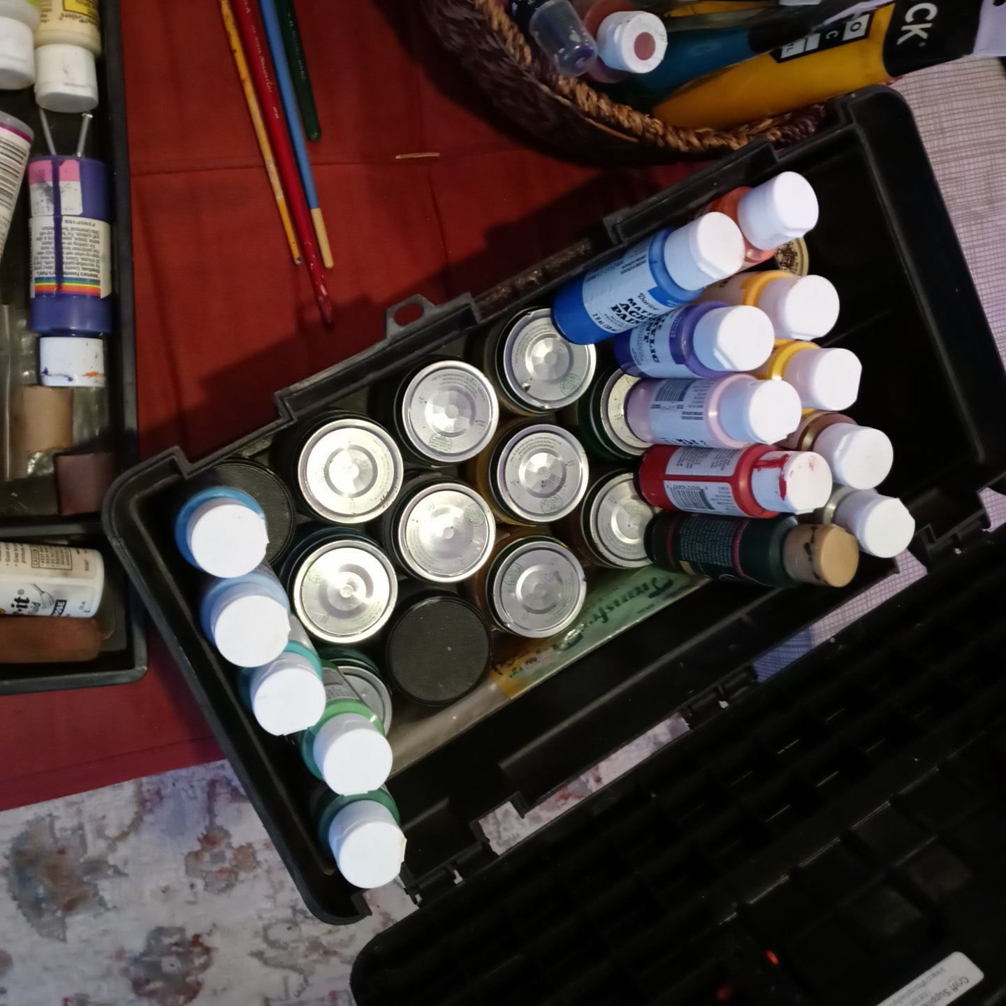 And I’ve decided to paint them as our household god the Universe will be beautiful 😍, this is what I’ve done so far. I decided to open up my baby food jar paint, glad I did one of those jars was moldy, so time to clean out, use, and clean up these paints, and I have some bottles to check out and see if they’ll work like a paint pen. Lol worth a shot.
