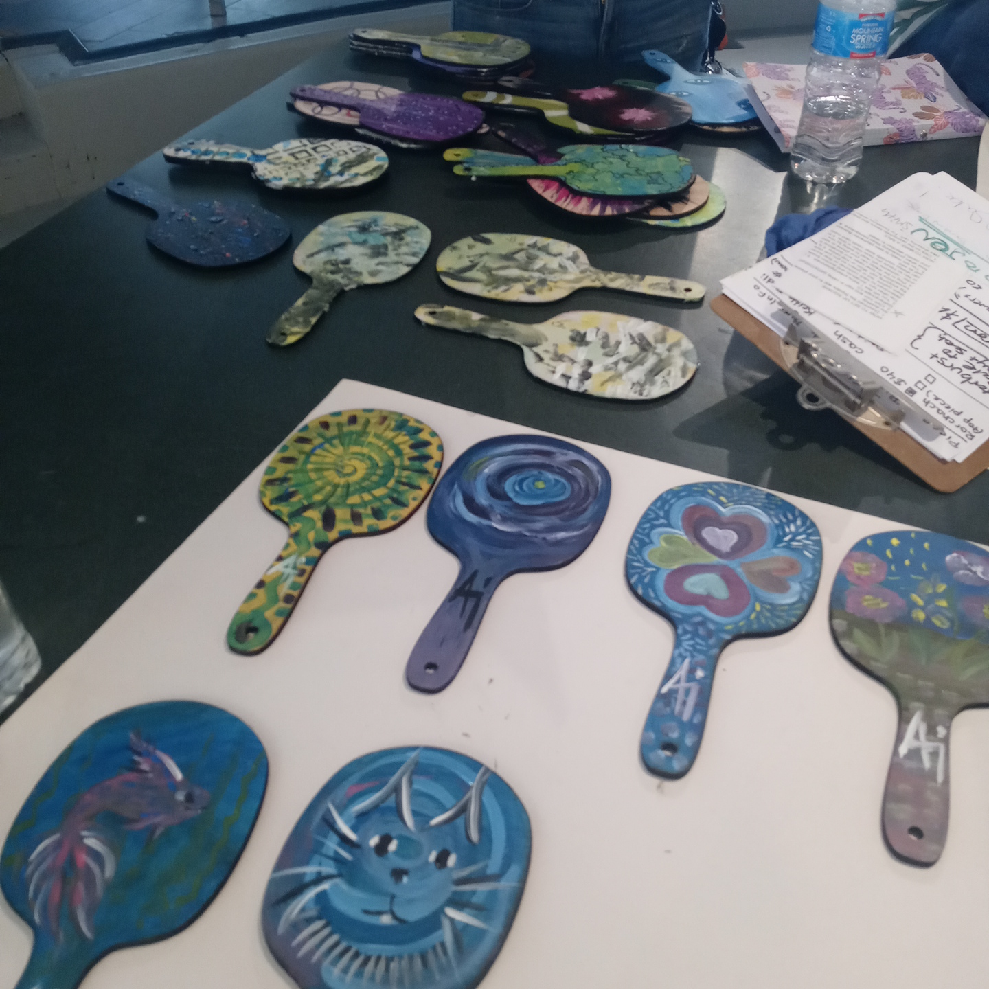 All the paddles, so many beautiful paddles, for our Gather Make Shelter fundraiser #gathermakeshelter