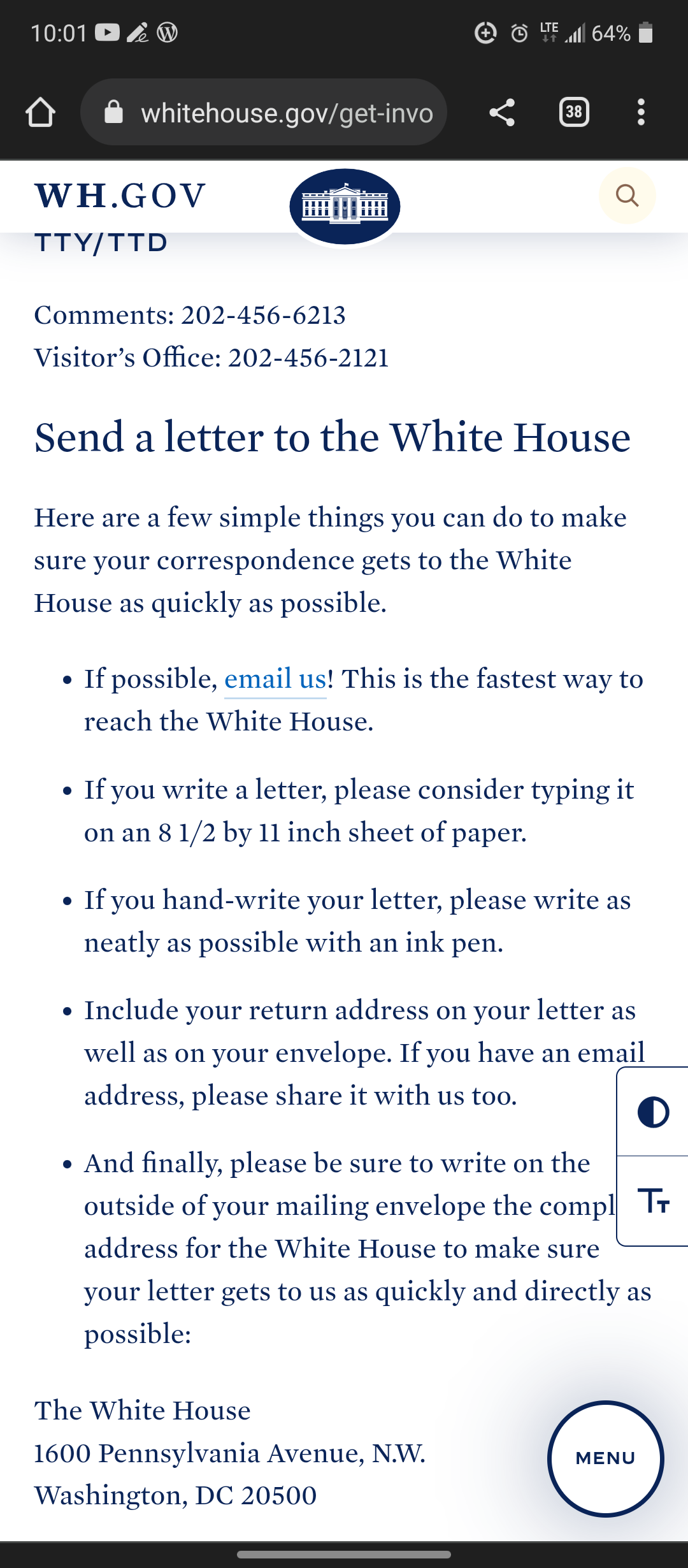 - If possible, email us! This is the fastest way to reach the White House.