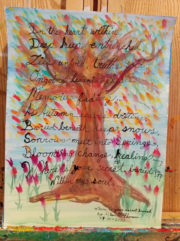 This is my creation of the poem Where is your secret buried originally written on 06-19-2019 and brought to life in watercolor on a 9″X12″ watercolor paper
