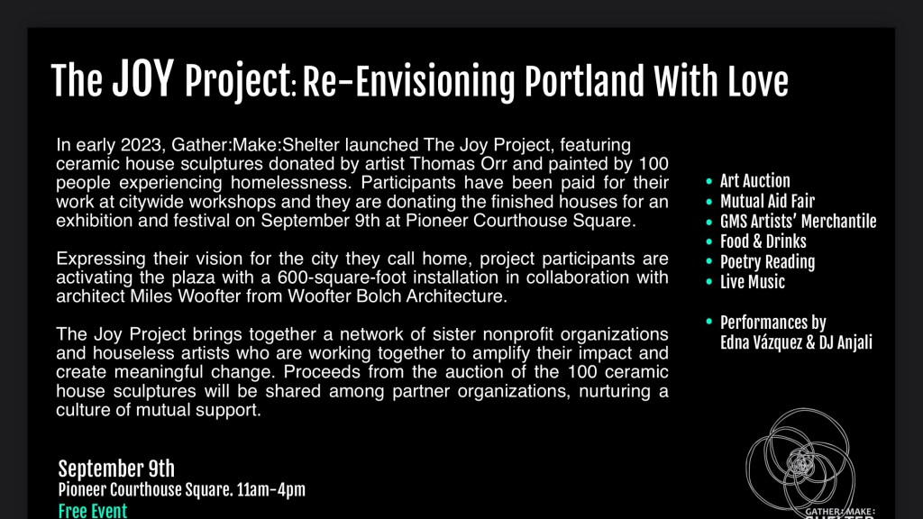 Saturday is going to be a long day for me, I’ll be working with my husband in the early morning doing setup for his Saturday market vendors and afterwards I’ll be going to meet Dana and my friends at Gather Make Shelter for the Joy project https://www.gathermakeshelter.org/events/the-joy-project-re-envisioning-portland-with-love