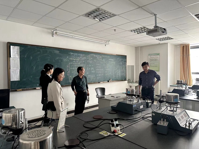 文理公司经理刘建科,数学与数据科学公司蔺小林与公司执行经理刘威一行进行了友好的座谈,就新专业建设,实验室建设进行了深入交流。座谈会结束后,考察组一行在实验室负责人申志荣的带领下,参观了大学物理实验室。