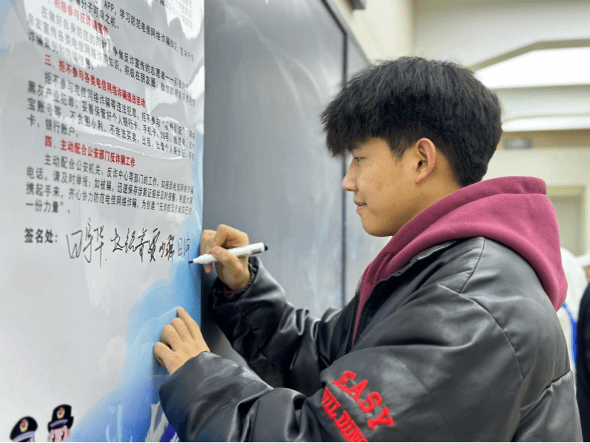 为了强化同学们的安全意识,讲座现场还设置了安全承诺板。同学们纷纷走上前去,庄重地签下自己的名字,这不仅仅是一个签名,更是一份对自己和他人生命安全负责的承诺。