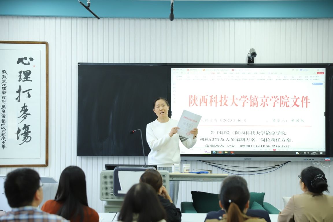 会上,吕纪荣副经理根据陕科大镐京发[2025]46号关于印发《best365机构设置及人员编制方案、岗位聘任方案新酬改革方案、聘期目标任务考核办法(试行)》的通知要求详细解读了《best365岗位聘任方案》《专业技术人员岗位设置、聘任及考核实施细则》等文件内容。着重强调专业技术岗位量化考核涵盖教学与科研两部分,且教学工作量和科研成果都有明确的量化指标。教学方面,对不同职称教师的年教学工作量和课堂教学课时提出了具体要求;科研方面,明确了学术论文、专著、专利等成果的积分标准。同时,介绍了岗位设置的八个等级以及各级岗位的基本聘任条件和上岗要求。
