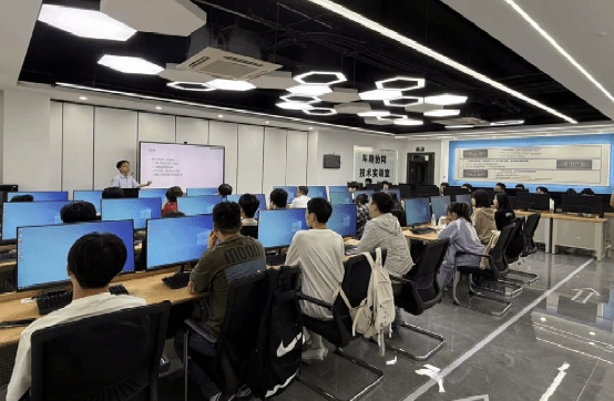 10点至11点,全体师生深入中国(重庆)职业技能公共实训中心参观。这里不仅有先进的设备与完善的实训环境,还涵盖多行业领域实训项目。通过参观智联驾驶实训中心、信息通信技术实训中心、汽车技术实训中心等。讲解员生动详实的介绍,让同学们近距离接触云计算技术在实际场景的应用案例,同学们仿佛置身于科技的海洋,深切感受到云计算技术在各行业的广泛应用和巨大潜力。
