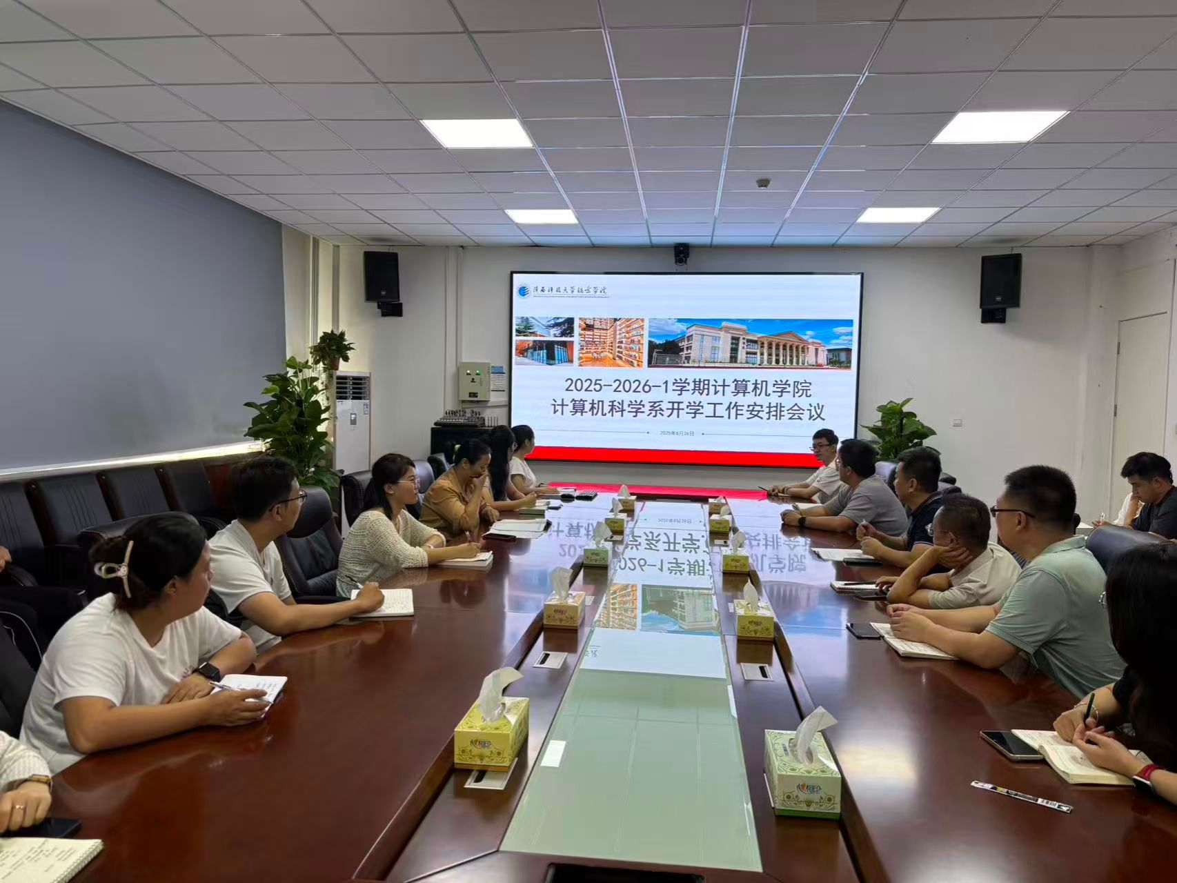 计算机科学系工作会议由系主任蔡静主持。同日,智能应用系工作会议由系主任王娟主持。两系全体教师分别参加了各自会议。会议围绕新学期开学初的关键工作进行了全面部署和深入研讨,主要内容涵盖以下六个方面:
