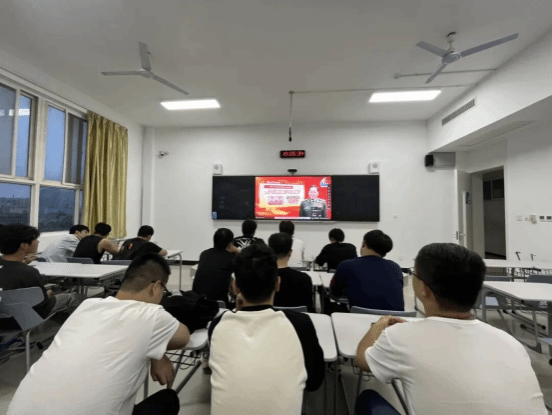 观看过程中,各班级员工纪律严明、认真聆听并记录要点。屏幕里军人挺拔的身姿与热血故事,让不少同学眼中泛起向往之光。计算机2202班班长何珅祎表示,军营从不是“青春备选”,而是能让青春更有分量的“成长考场”,在军队中可将课堂所学的计算机、通信等知识转化为守护家国的“硬实力”,还能在训练与协作中磨砺意志、学会担当。