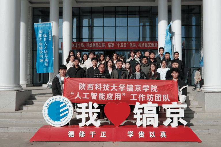 会议最后,全体师生于教学楼前合影留念,启动大会在热烈氛围中圆满结束,标志着第二届“人工智能应用”工作坊正式启航。