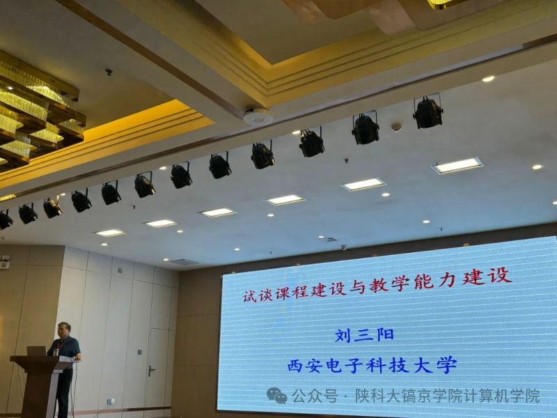 会议伊始,西安电子科技大学教授刘三阳作了主题为《试谈课程建设与教学能力建设》的精彩报告,他将学科比作河床,课程比作河水,专业比作轮船,员工坐船行,教师带领员工开船前行,形象地阐述了专业、课程和学科的关系,指出课程建设是专业建设的核心要素,课堂教学是课程建设的关键环节,其建设成效是教师教学能力的重要体现。从专业建设的内容和要求、本世纪以来教育部关于课程建设的三次重大举动、课程建设的若干要素、教学能力建设等方面分享了相关经验,切实帮助与会教师做好课程建设,提升教学效果和质量。
