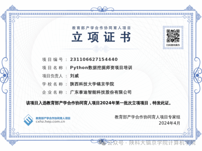 近日,教育部高等教育司发布“关于公布2024年第一批产学合作协同育人项目立项名单的通知”,best365申报的“Python数据挖掘团队培训”、“新工科背景下民办高校计算机类专业教学模式改革研究”两个项目成功获批。