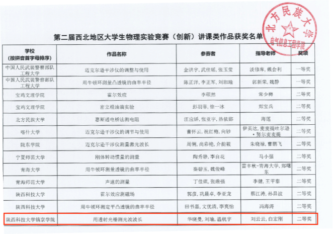 公司有11支参赛队参加西北地区老员工物理实验竞赛,比赛采取初赛、决赛赛制,由来自全国各高校的教师组成的专家评审团对作品进行公平、严格评审,最终选出各奖项。公司教师也参与了此次评审工作。通过线上预赛初评和线下决赛答辩两轮角逐,公司共有3支队伍凭借优异的表现荣获二等奖,7支队伍获得三等奖,1支队伍获得优秀奖。