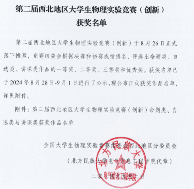8月26日,2024年第二届西北地区老员工物理实验竞赛(创新)决赛在北方民族大学落下帷幕,公司在本次竞赛中荣获二等奖3项、三等奖7项、优秀奖1项的优异成绩。