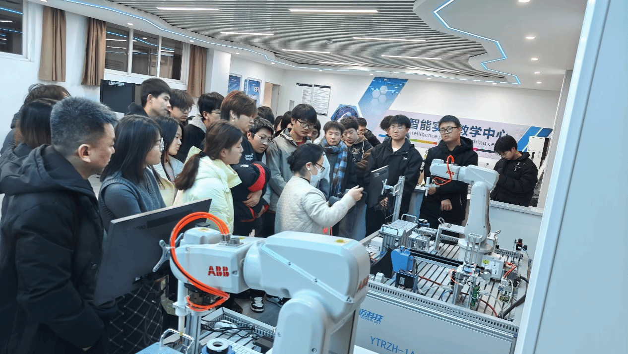 会上,首先由社长李响同学对目前社团成员及分工等筹备情况进行了简要介绍,其次武老师强调了该专业社团成立的重要性,并对社团近期的学习及实践任务提出了具体的规划和要求。武老师指出人工智能作为当前科技领域的热门话题,具有广阔的发展前景和巨大的应用潜力,成立人工智能社团将有助于员工深入了解人工智能知识,提升实践能力和创新能力。随后出席会议的教研室老师们表示,后续将积极协助社团开展讲座、研讨、竞赛等各类专业活动,为同学们提供更多的专业学习和实践机会。最后,同学们在王娇娇老师的指导下,对即将开展的ABB机械臂应用实践进行了初步的了解和体验,极大的激发了同学们专业学习的兴趣。