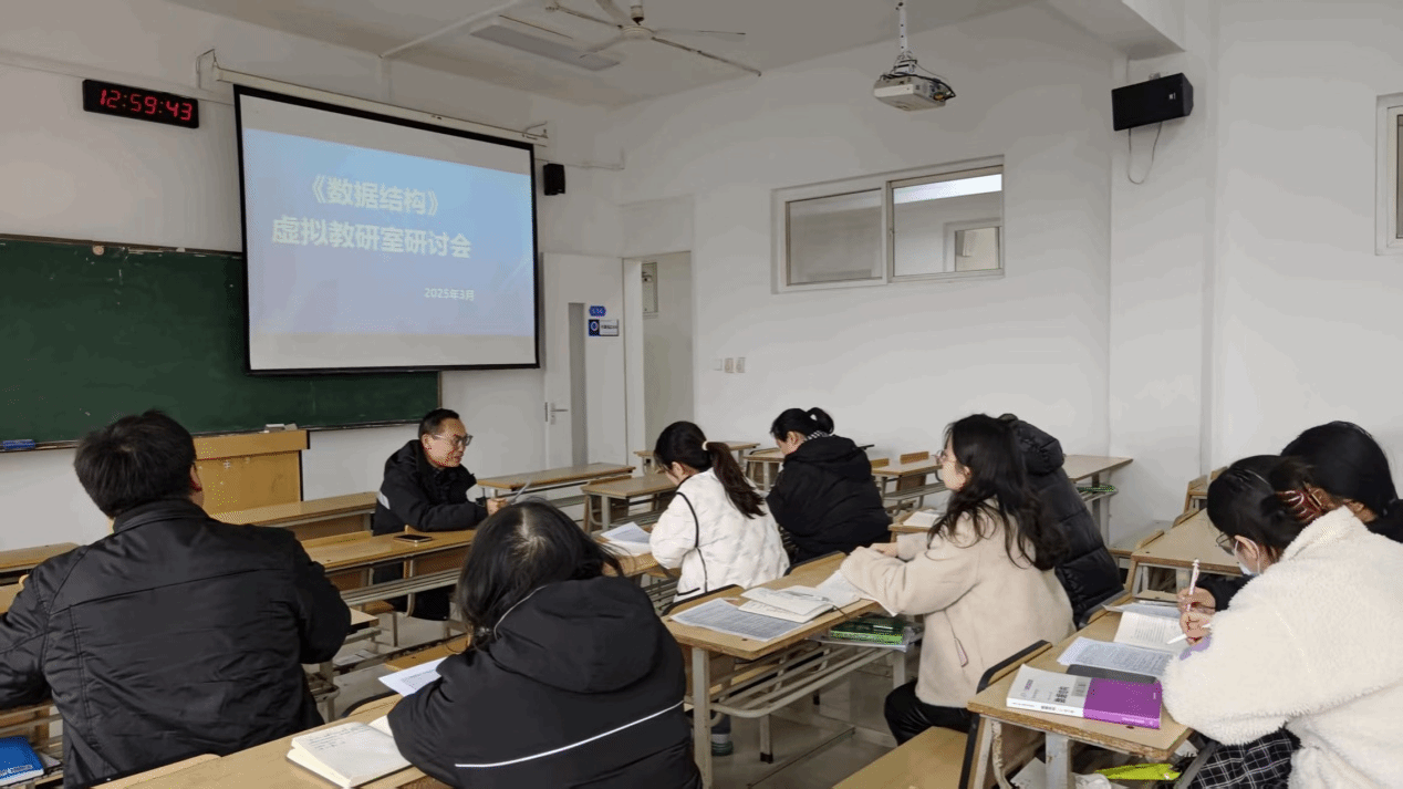 会议伊始,朱赖红副教授宣布《数据结构》虚拟教研室已通过校内审批正式建设,并高度肯定了团队前期在课程资源整合、教学大纲优化等方面的成果。他强调,虚拟教研室的建设不仅是响应教育部“深化公司产品改革”的号召,更是适应人工智能时代教育数字化转型的必要举措。依托AI数字人技术,未来教研室将开发智能教学助手,辅助教师进行个性化教学设计与学情分析;同时,院内高性能服务器的升级计划,将为虚拟教研平台提供稳定支撑,助力跨校资源共享与远程协作教研。