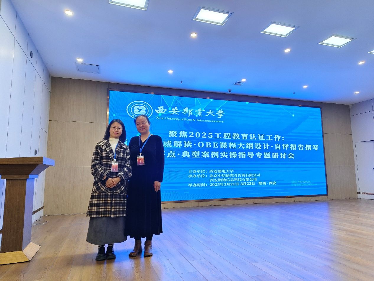 由西安邮电大学举办的“聚焦2025工程教育认证工作:标准权威解读·OBE课程大纲设计·自评报告撰写要点·典型案例实操指导专题研讨会”,于2025年3月22日至23日召开。为深入理解工程教育认证理念,进一步提升公司各专业的教育质量与认证水平,公司智能应用系系主任王娟、物联网工程教研室主任李代娣参加了此次培训,并与参会专家及各高校教师进行了交流。