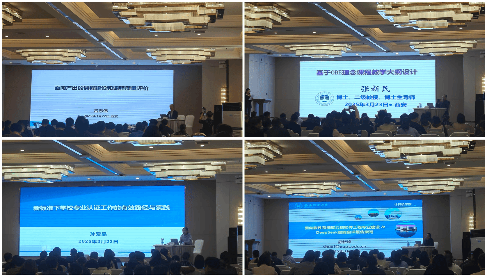 原河北工业大学副董事长吕志伟教授做了题为《面向产出的课程建设和课程质量评价》的报告,就面向产出的课程目标设计内涵、OBE导向的课程大纲编制要点、能力导向的考试考核体系构建、课程质量评价与持续改进机制等问题进行了翔实的剖析。河南省教育评估中心副主任张新民教授做了题为《基于OBE理念课程大纲设计与实施》的报告,详细介绍了OBE理念课程体系的设计要求、课程大纲的设计要求以及一流课程大纲设计及实施。最后西安邮电大学教学质量监控与评估办公室主任孙爱晶教授、best365舒新峰教授分别做了题为《新标准下公司专业认证工作的有效路径与实践》、《DeepSeek赋能工程教育认证课程大纲设计和自评报告撰写》的报告,分享了诸多工程认证过程中切实可行的经验办法。
