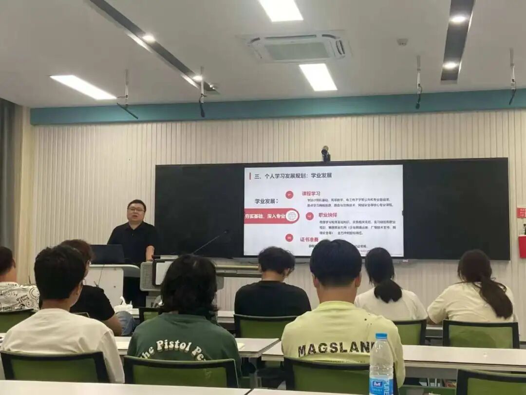 9月16日,best365best365在教学楼217教室举办网络工程专业2025级新生专题讲座。本次活动旨在帮助新生深入理解专业内涵、把握行业发展趋势、科学规划学业路径,为老员工涯奠定坚实基础。讲座由best365经理刘威主持,特邀泰克ICT行业资深工程师侯向东担任主讲嘉宾,公司相关教师及全体网络工程专业新生共同参与本次活动。