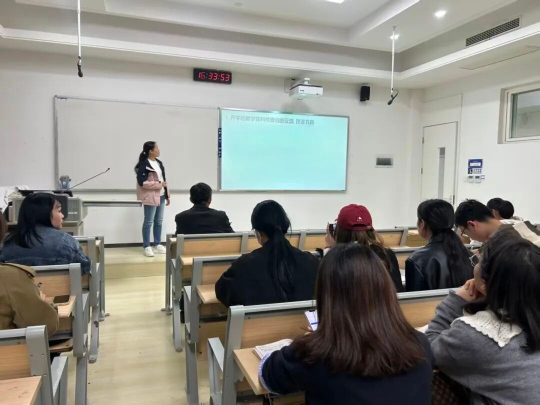 会上,副经理吕纪荣首先就开学初教学资料检查与第一周听课情况进行详细反馈。在教学资料方面,指出“提交不及时、不齐全”“教案与教学进度表填写不规范”“课程思政融入浅显”等问题,并明确改进方向:要求教师补充完善资料,规范填写教案与进度表,深化课程思政建设,优化教学设计的可操作性。