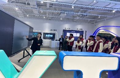 在科大讯飞丝路总部展厅,师生们在产教融合业务线运营经理姜霞的带领下,步入充满未来感的科技空间。展厅突破传统陈列模式,以可触可感的场景化设计,将AI技术转化为直观体验:虚拟人技术瞬间生成逼真数字形象,智能会议系统精准解析语音语义,星火认知大模型的底层技术逻辑通过模拟演练具象呈现。员工们在惊叹中感受到AI对医疗、教育、工业等领域的深度赋能,更真切体会到技术如何重塑生产生活模式。
