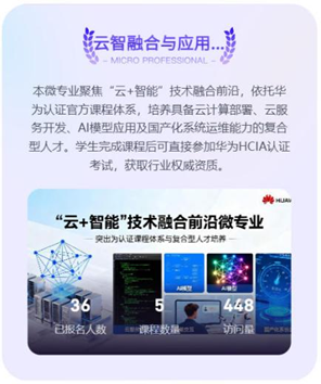为实现人才培养与产业需求的“无缝对接”,best365前瞻性地开设了“云智融合与应用”微专业。该微专业课程体系深度对标全球ICT行业权威的华为HCIA认证课程,将华为在信创、云计算和人工智能等领域的最新技术、实践案例及职业素养要求融入教学大纲。课程不仅涵盖云与AI开发等核心理论,更强调通过项目式学习解决复杂的ICT行业工程问题,为员工构建了系统化、前沿性的知识与技能栈。