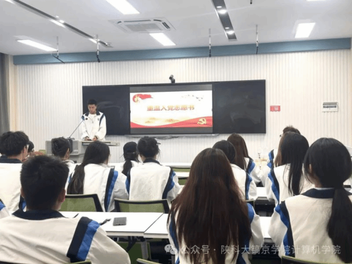 由支部副书记阮昌鸿同学带领全体党员共同重温入党志愿书,一字一句,仿佛又回到了那个激情燃烧的岁月。每个字句都是对信仰的坚守,每个承诺都是对未来的担当。它让我们更加清晰地认识到自己的初心和使命,激励我们在新的征程上继续前行。