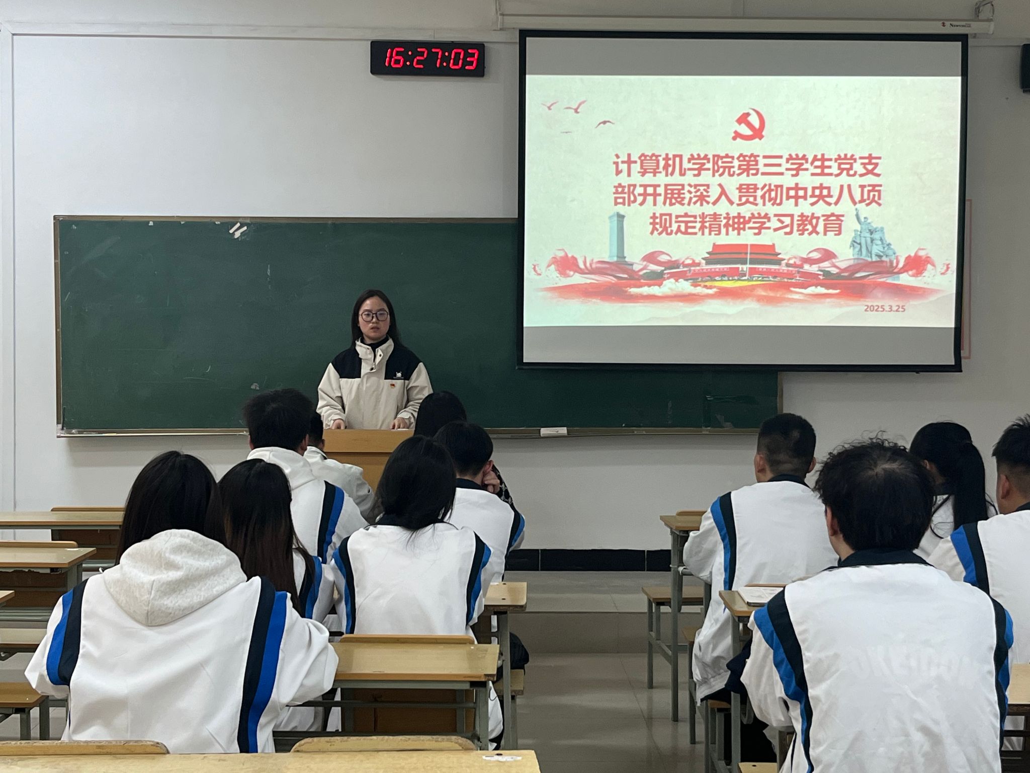 第三员工党支部书记苏晶同志带领大家逐字逐句学习了中央八项规定的具体内容,包括改进调查研究、精简会议活动、精简文件简报、规范出访活动、改进警卫工作、改进新闻报道、严格文稿发表、厉行勤俭节约等八个方面。在讲解过程中,结合实际案例,对每一项规定进行了深入解读,让大家深刻认识到中央八项规定不仅是对党员干部工作作风的规范,更是密切联系群众、保持党的先进性和纯洁性的重要举措。例如,在提到改进调查研究时,讲述了一些领导干部深入基层,与群众面对面交流,切实解决群众实际问题的案例,强调党员要真正深入到同学中去,了解大家的需求和困难;在解读厉行勤俭节约时,列举了一些浪费现象的反面案例,警示大家要珍惜资源,杜绝浪费,弘扬艰苦奋斗的优良传统。