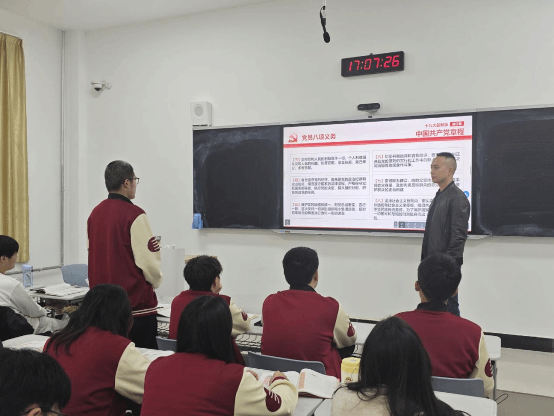 在互动环节,学员们围绕“如何在新时代履行党员义务”“青年学子如何以《中国共产党章程》为指引锤炼品格、强化党性修养”等问题展开热烈讨论,董亚老师逐一回应学员疑问,结合自身工作经历与党建工作实践,为学员们提供了具体的指导与建议。整场培训节奏紧凑、内容充实,既传递了理论知识,又搭建了思想交流的平台,有效深化了学员对党章的理解与把握,进一步坚定了大家入党的信念与决心。