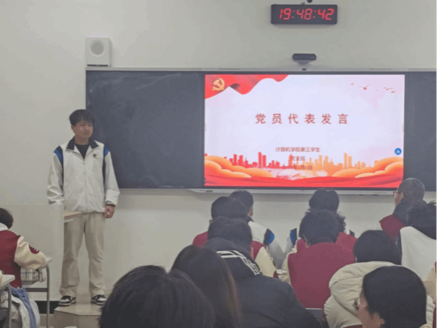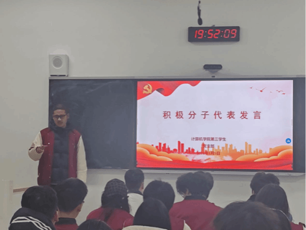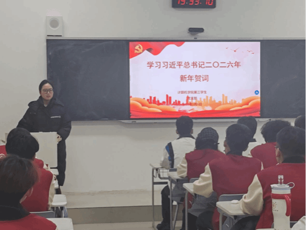 观看结束后,现场交流分享环节有序开展。党员代表结合计算机专业特色,围绕贺词中“依靠创新为高质量发展赋能”的论述,谈到要立足专业深耕细研,紧盯人工智能、芯片研发等科技前沿,以过硬专业本领响应国家创新驱动发展战略,在科技自立自强的征程中贡献青春力量。入党积极分子代表表示,贺词中“每个‘小家’热气腾腾,中国这个‘大家’就蒸蒸日上”的温暖表述令人动容,未来将以党员标准严格要求自己,在学业科研与志愿服务中锤炼品格、增长才干,努力成为可堪大用、能担重任的栋梁之才。