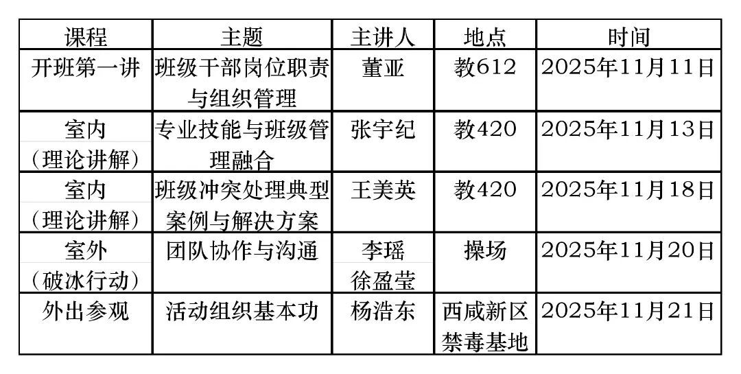 本次培训涵盖理论讲解、破冰行动、外出参观等多个环节,后续将由多位经验丰富的教师,围绕专业技能与班级管理融合、冲突处理、团队协作等主题开展专项培训。培训日程如下: